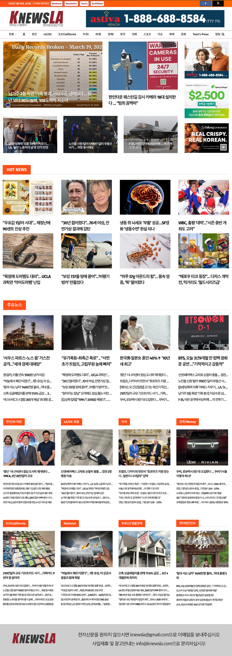 [K-News LA 뉴스레터] 2026년 3월 20일 금요일
