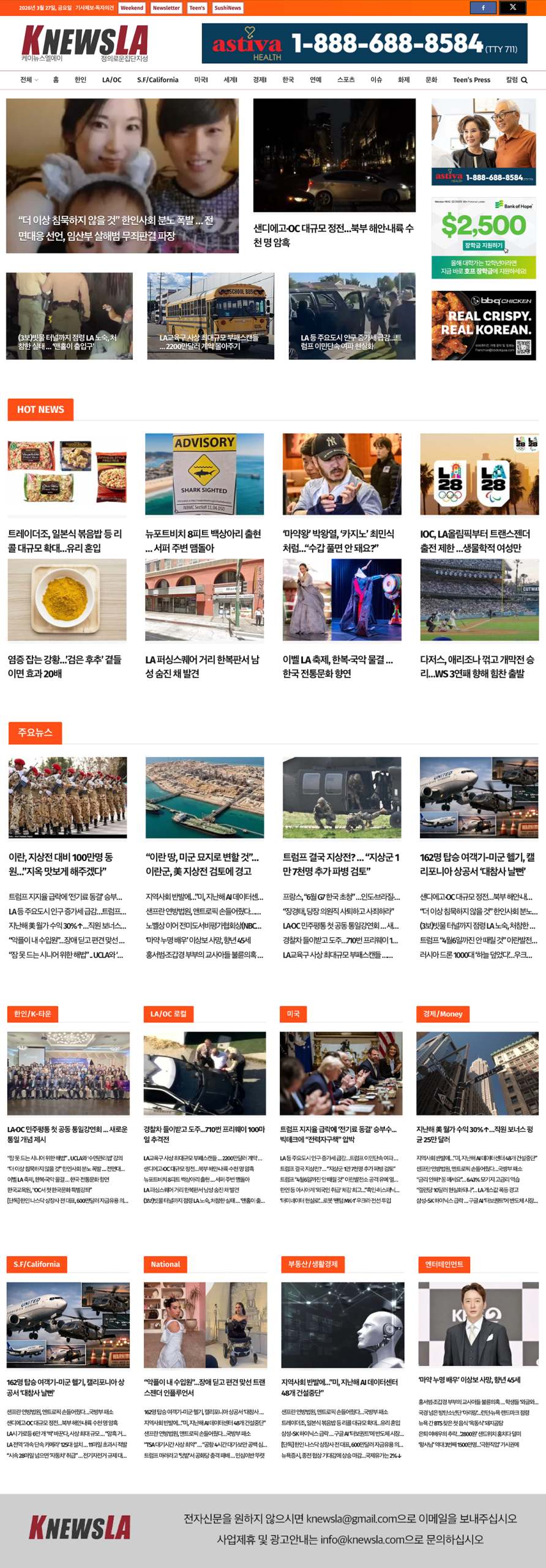 [K-News LA 뉴스레터] 2026년 3월 27일 금요일