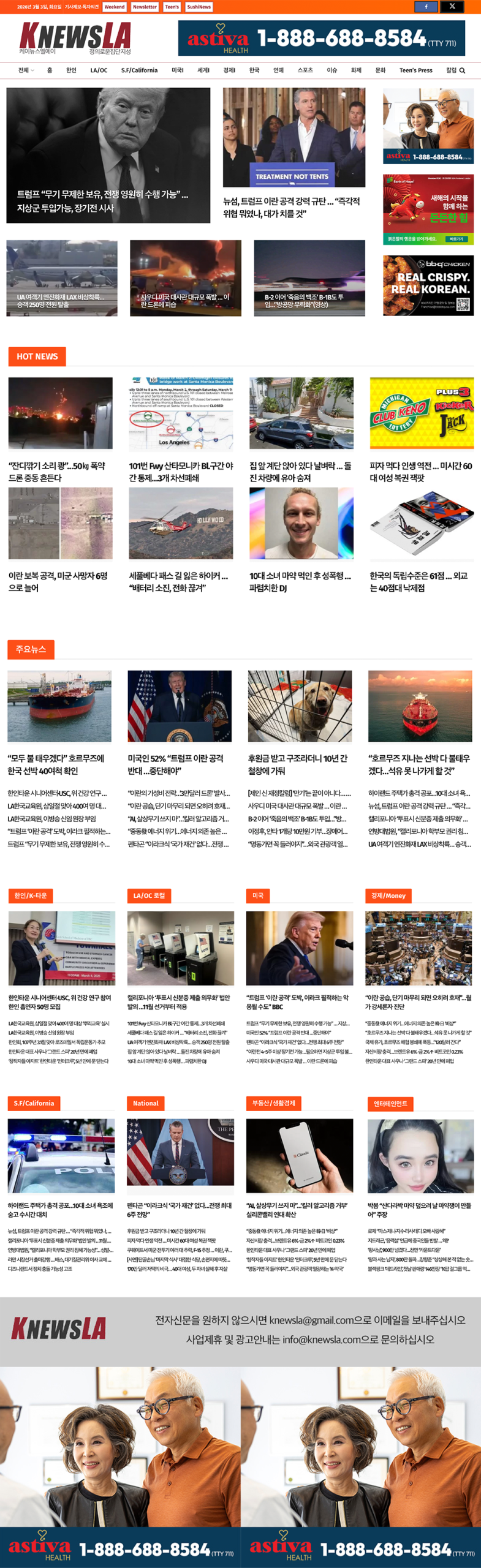 [K-News LA 뉴스레터] 2026년 3월 3일 화요일