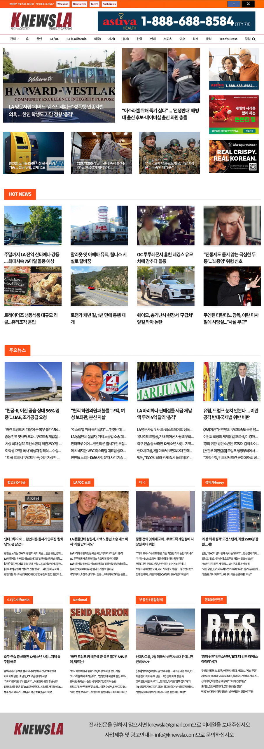 [K-News LA 뉴스레터] 2026년 3월 5일 목요일
