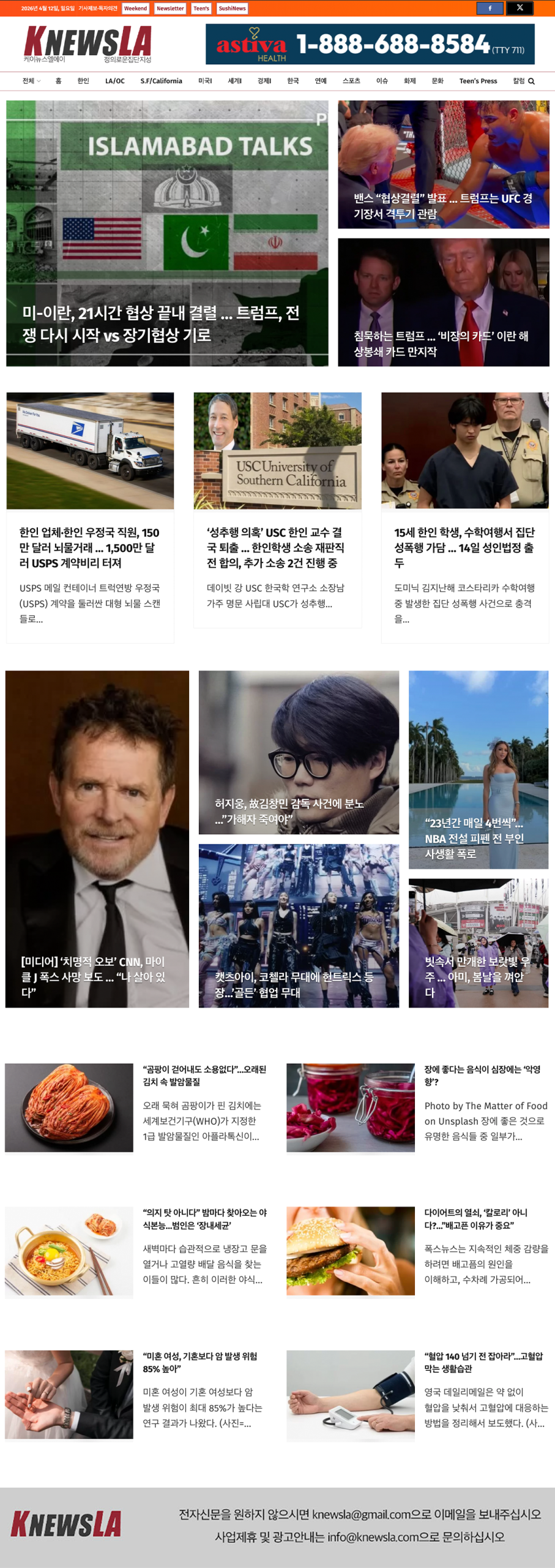 [K-News LA 뉴스레터] 2026년 4월 12일 일요일