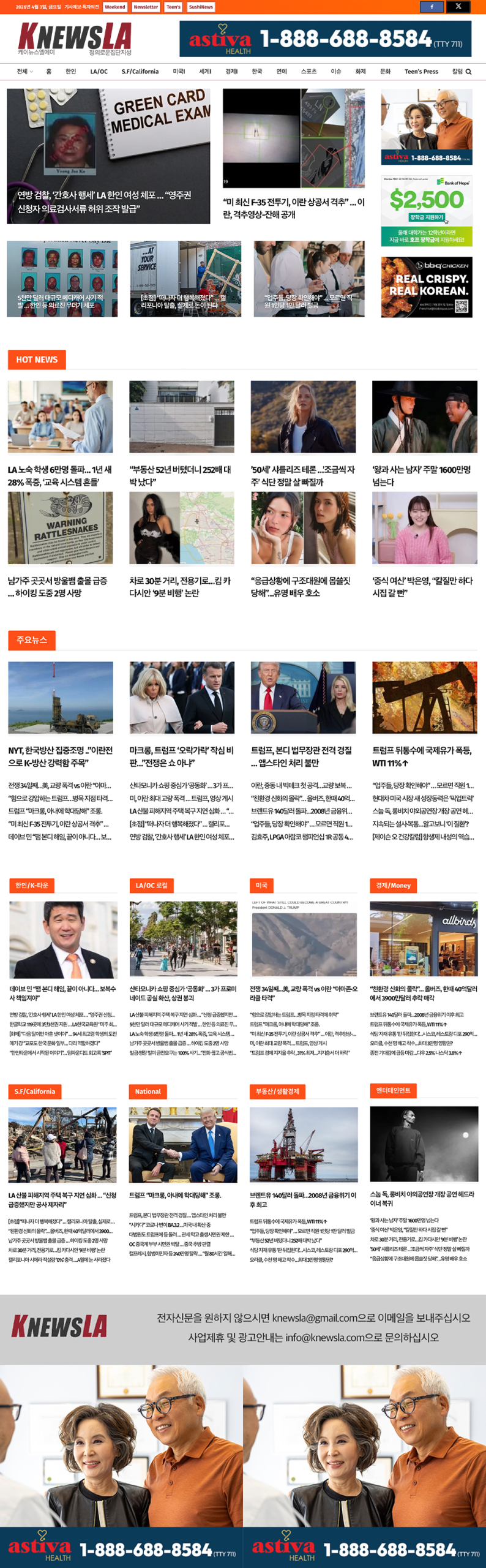 [K-News LA 뉴스레터] 2026년 4월 3일 금요일