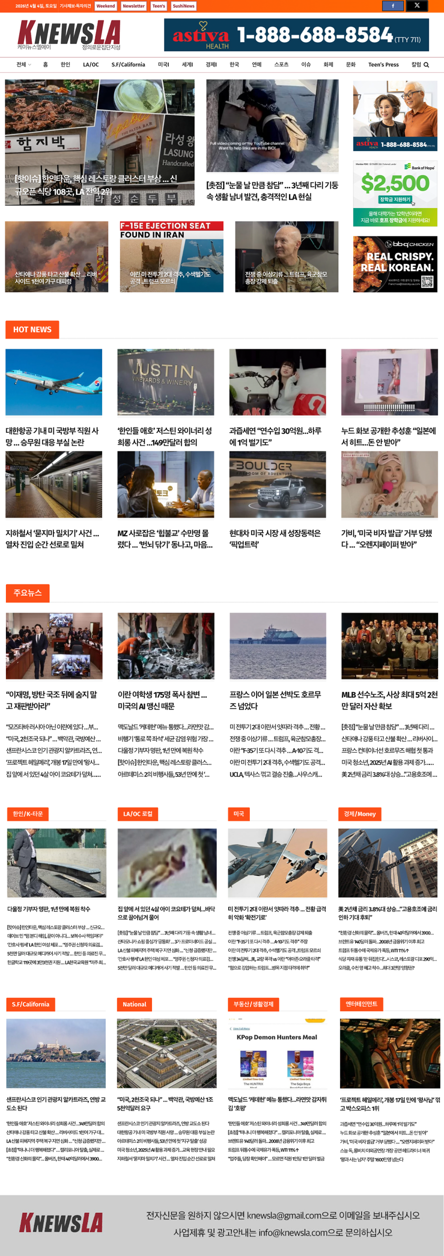 [K-News LA 뉴스레터] 2026년 4월 4일 토요일