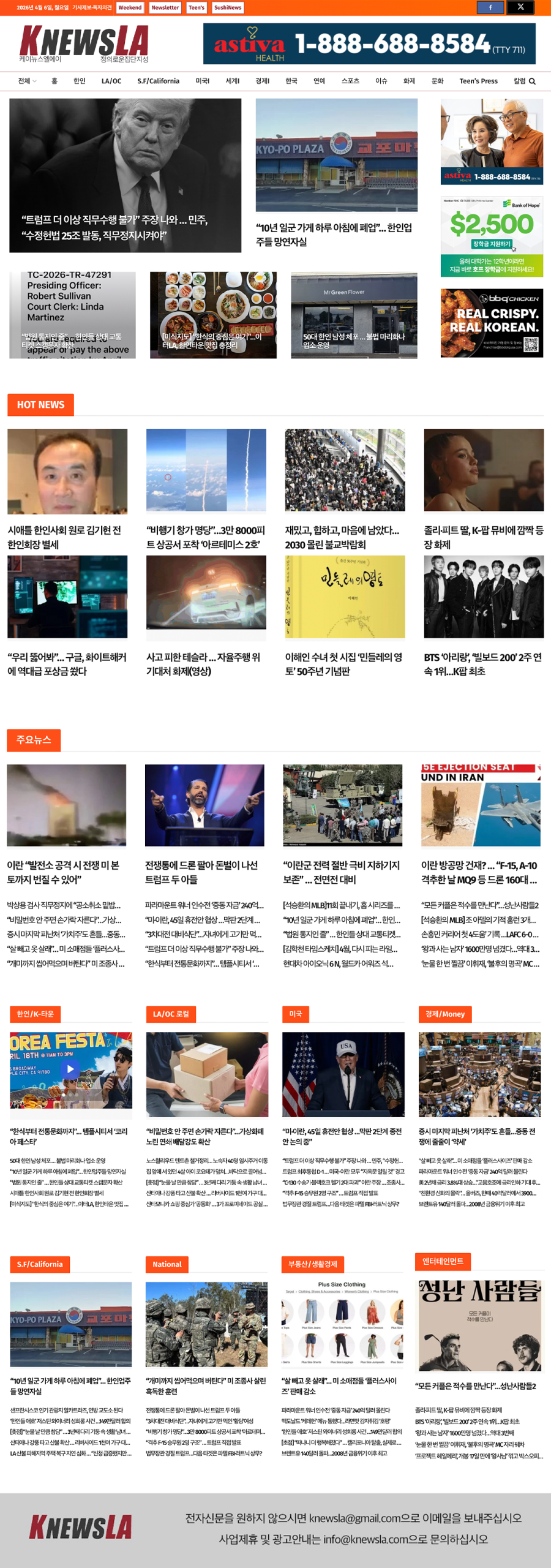 [K-News LA 뉴스레터] 2026년 4월 6일 월요일