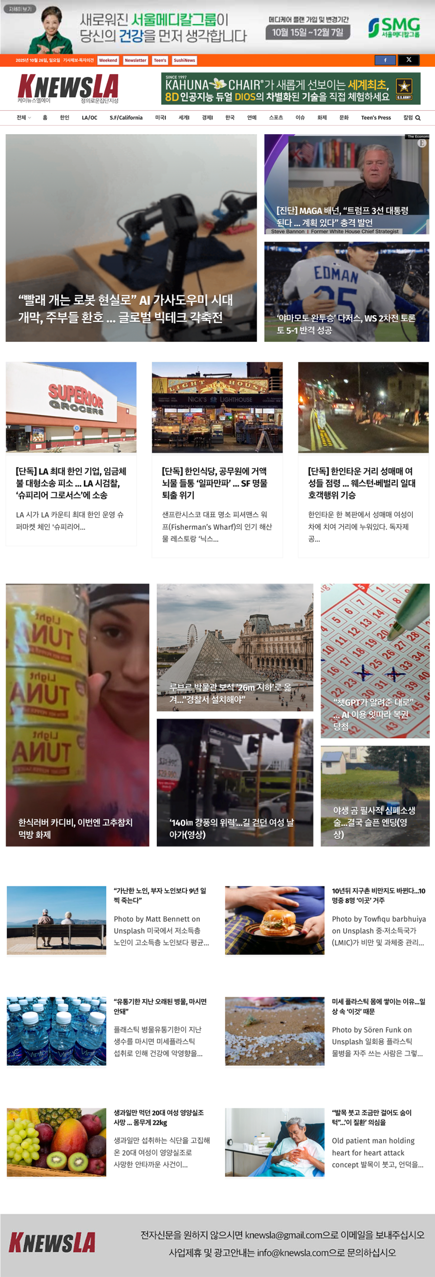 [K-News LA 위켄드 뉴스레터] 2025년 10월 26일 일요일