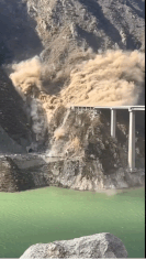 쓰촨성과 티베트를 잇는 홍치대교가 지난 11일 오후 산사태로 붕괴되고 있다.(사진출처: SNS 캡처)