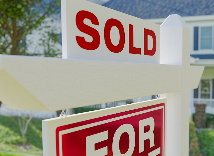 For Sale Real Estate Sign in Front of New House. By Andy Dean
