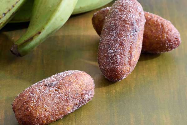 “잘 익은 마두로(달콤한 플랜테인)와 그린 플랜테인을 으깨 혼합해 만든 반죽 안에, 고추와 스페인 향신료를 넣고 천천히 졸인 블랙빈 퓨레를 채운 후, 설탕에 굴려 완성한 포르토스 시그니처 디저트”