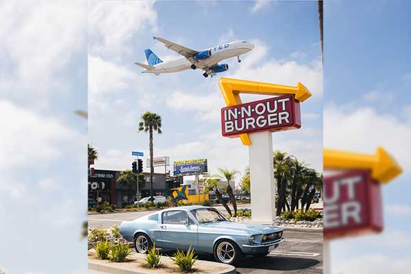 문제가 된 게시물에는 LA 국제공항(LAX) 인근 인앤아웃 매장 상공을 지나가는 유나이티드 항공기, 클래식 포드 머스탱, 지역 변호사 광고판 등이 함께 담겼다. 여기에 “LA 여행이 그리우면 , 그냥 배고프면 를 눌러보세요”라는 문구가 더해지면서 농담 섞인 협업 암시로 받아들여졌다.