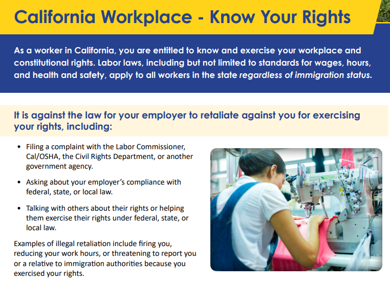 캘리포니아주 상원법안 SB 294 ‘직장내 권리 알림법'(Workplace Know Your Rights Act)에 따라 캘리포니아주 노동청(DIR)은 지난 1월1일 고용주가 직원에게 의무적으로 제공해야 할 공식 권리 통보서 양식을 노동청 웹사이트에 게시했다. 고용주들은 지난 2월1일부터 현 재직 직원과 신규 채용 직원 모두에게 이 통보서를 반드시 전달해야 했다.