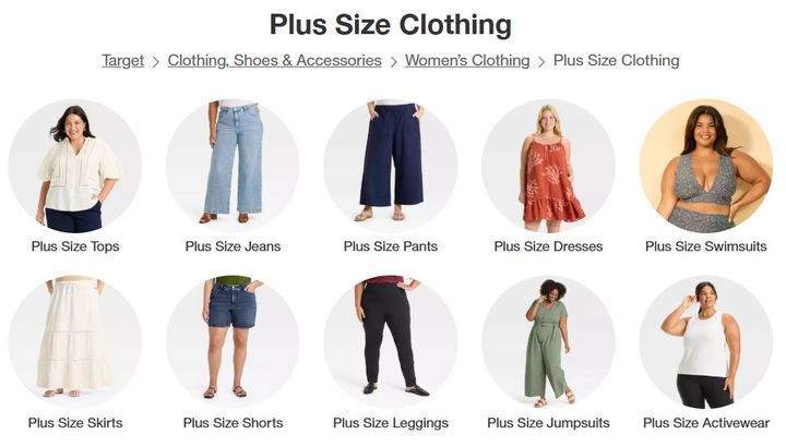 ‘타겟’의 온라인 플러스사이즈 제품 페이지. (사진=타켓 캡처)