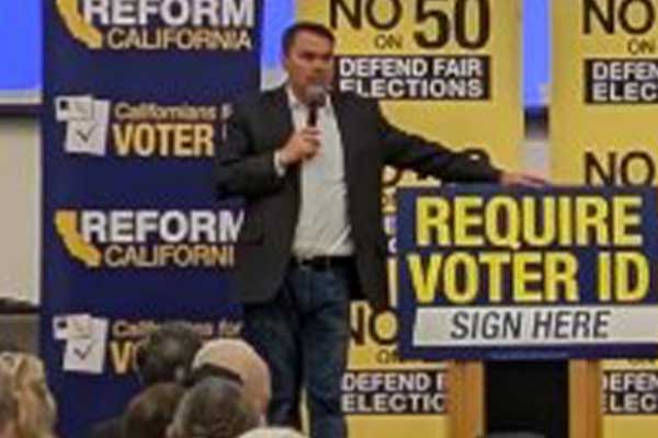 칼 드마이오 주 하원의원이 주민발의안 50 반대 캠페인을 하고 있다. 칼 드마이오 X