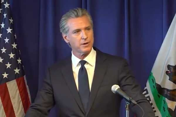 개빈 뉴섬 캘리포니아 주지사가 연방정부 SNAP 프로그램 지원과 관련해 소송을 제기했다고 발표하고 있다. 주지사 사무실