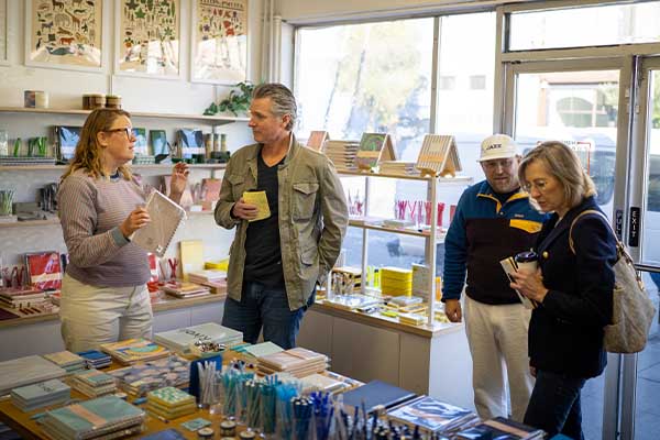 개빈 뉴섬 주지사가 스몰비즈니스를 방문해 이야기를 듣고 있다. 뉴섬 주지사 사무실