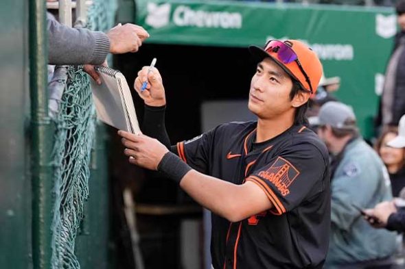 이정후가 팬들에게 사인해 주고 있다. 샌프란시스코 X