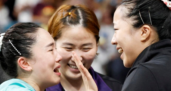 신유빈과 전지희, 이은혜는 서로 부둥켜 안고 메달 획득의 기쁨을 나눴다.