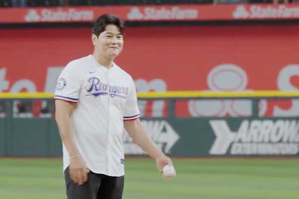추신수 SSG 랜더스 구단주 보좌역이 메이저리그(MLB) 친정팀 텍사스 레인저스의 홈구장을 방문해 시구를 했다.