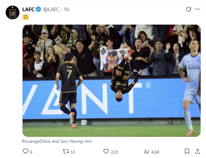 ]LAFC 득점을 합작한 손흥민과 부앙가. (사진=LAFC 구단 소셜미디어 캡처)