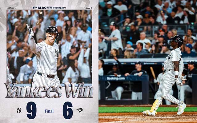 이어 미국 뉴욕의 양키스타디움에선 뉴욕 양키스가 토론토 블루제이스를 9-6으로 꺾고 ALDS 3차전 만에 첫 승을 거뒀다.