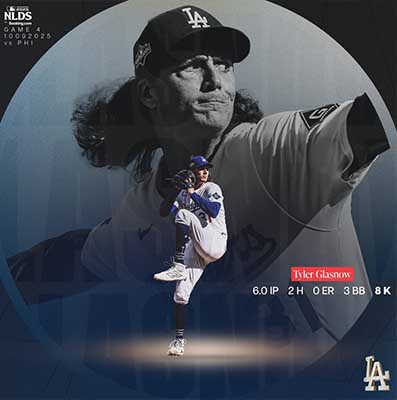 다저스 타일러 글라스노우가 선발로 나서 6이닝 무실점으로 승리의 발판을 놨다. 다저스 X