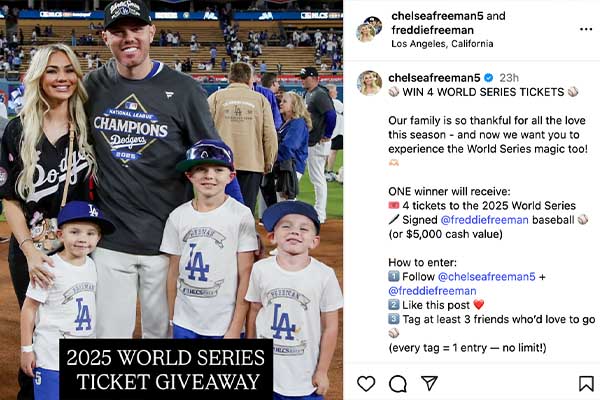 프레디 프리먼 가족이 월드시리즈 티켓을 팬들에게 나눠주는 이벤트를 진행한다고 밝혔다. 프레디 프리먼 인스타그램