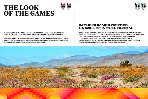 2028년 올림픽과 패럴림픽은 캘리포니아의 봄 기운을 담은 시각적 디자인으로 꾸며진다.