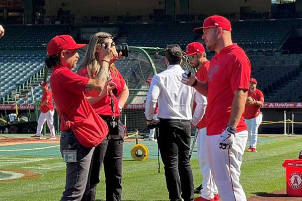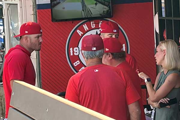 앤절스 마이크 트라웃이 그라운드에서 인터뷰하고 있다. 석승환