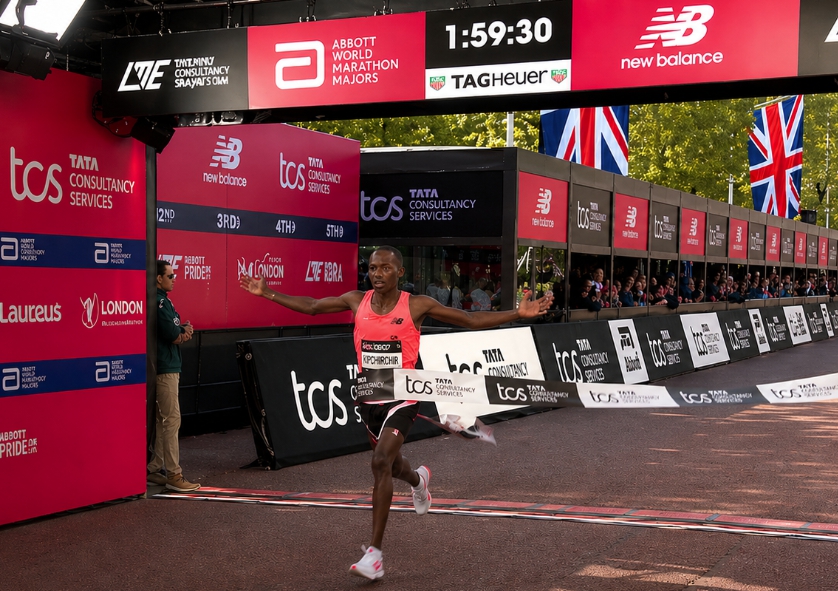 사웨는 26일(한국 시간) 영국 런던에서 열린 2026 런던 마라톤 남자부 경기에서 42.195㎞ 풀코스를 1시간59분30초에 완주하며 우승을 차지했다.