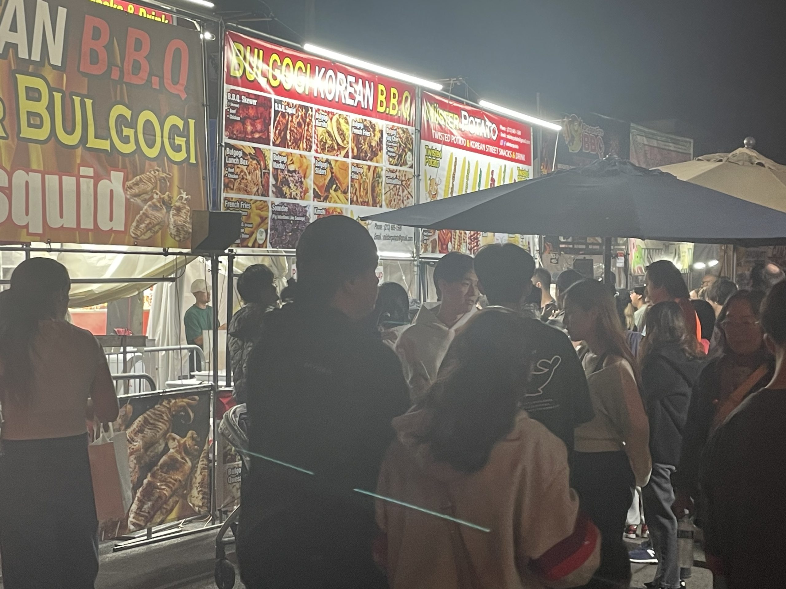 한국식 불고기와 오징어구이 부스 앞에 몰린 인파. 저녁 시간대에는 먹거리 부스마다 긴 줄이 이어졌다.[K-News LA]