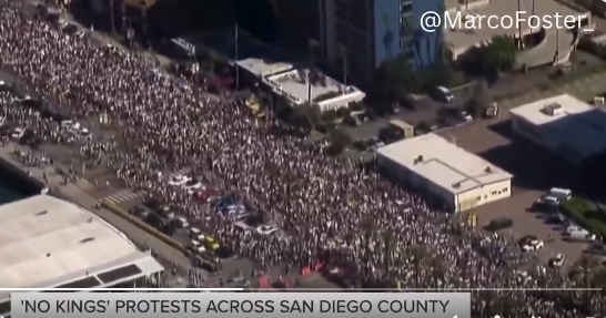 No Kings@NoKingsProtest·13hHAPPENING NOW: A MASSIVE crowd of protesters flood the streets of San Diego for a “No Kings Day” rally showing their love for America and standing up against Trump