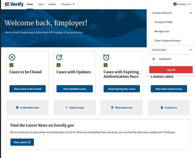 E-Verify 고용주 대시보드 화면. 신규 채용자의 노동허가 상태를 확인하고, 갱신 필요 문서나 업데이트 건을 관리하도록 구성된 시스템으로, 최근 트럼프 행정부의 고용 현장 단속 강화 논의 속에서 핵심 검증 도구로 다시 주목받고 있다. 사진 제공=U.S. Citizenship and Immigration Services (USCIS)