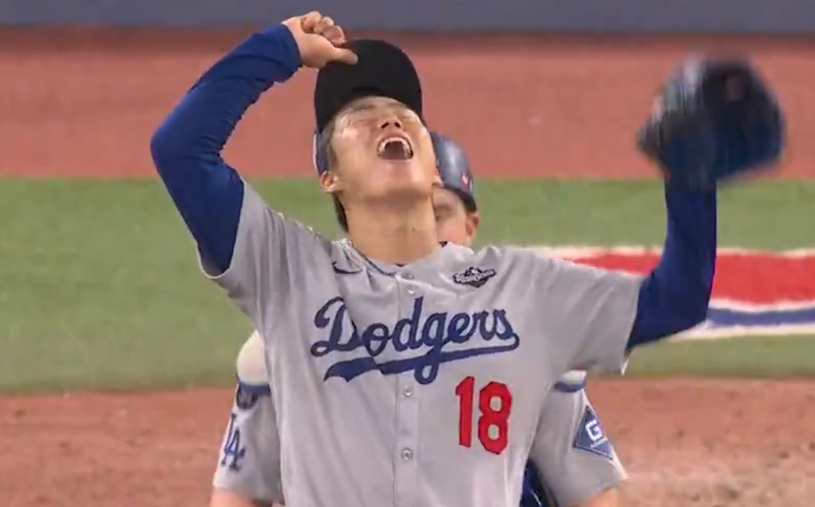 야마모토는 1사 1, 3루에 알레한드로 커크에게 병살타를 유도하며 이날 승리 확정과 함께 크게 포효했다.