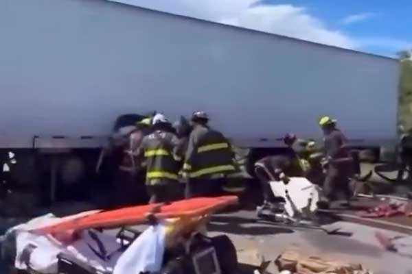 플로리다에서 불법 유턴하던 트럭을 들이받은 승용차에서 운전자를 구조하고 있다. X@Bubblebathgirl