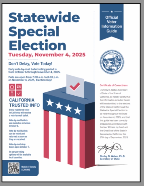 캘리포니아 전역의 유권자들은 오는 11월 4일 화요일 실시되는 주 특별선거에서 ‘발의안 50(Proposition 50)’의 운명을 결정하게 된다.