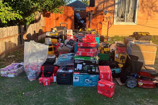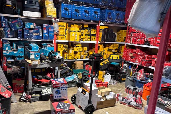 공개된 사진에는 홈디포를 비롯한 주택 개보수 매장에서 훔친 것으로 보이는 다량의 공구, 잔디깎이, 전동톱, 송풍기, 진공청소기 등 다양한 물품이 쌓여 있는 모습이 담겼다.