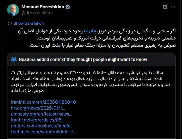 그는 같은 엑스 게시물에서 “이란 국민들의 삶에 고난과 생활고가 있다면, 그 주된 원인 중 하나는 미국 정부와 그 동맹국들의 오랜 적대감과 비인도적인 제재 때문”이라고 주장했다.