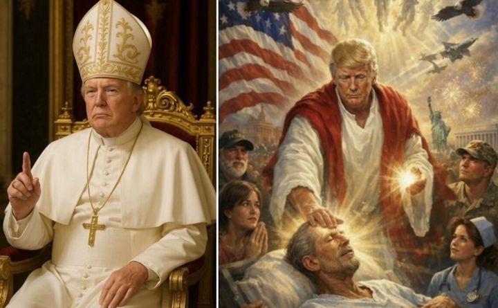 트럼프 대통령은 12일 트루스소셜에 자신이 예수가 돼 흰옷을 입고 병자를 치유하는 기적을 행하는 모습의 AI 사진을 올렸다가 ‘신성모독’이라는 비판을 받고 하루 만에 삭제했다. 해당 사진 속 트럼프 대통령은 성스러운 빛을 뿜어내며 군인과 시민들의 감격 어린 시선을 한 몸에 받고 있다. 이는 그가 레오 14세 교황을 향해 “정신 차리라”며 원색적인 비난을 퍼부은 직후 게시돼 자신을 교황보다 우월한 구원자적 존재로 부각하려 했다는 해석이 나온다.