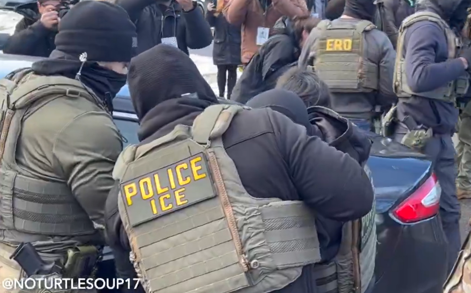미니애폴리스에서 연방 이민세관단속국(ICE) 요원들이 차량에서 여성을 끌어내고 있는 장면.영상 캡처(@noturtlesoup17)