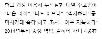 그러면서 해당 교직원에게 “섹시하다”고 하거나, “집을 30일 정도 비울 수 있다”라며 이메일을 보낸 기록도 드러났다.