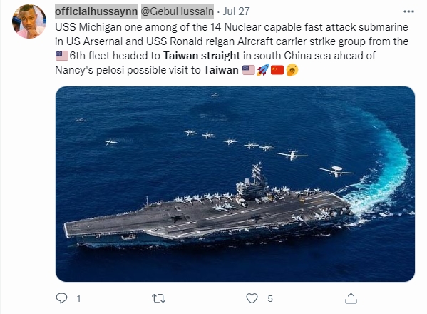 낸시 펠로시 미국 하원의장이 2일 저녁 대만에 도착할 것으로 알려진 가운데 대만해협 군사적 긴장이 최고조에 달하고 있다.