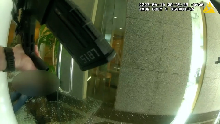 지난 10일 켄터키주 루이빌의 올드 내셔널 은행 건물에서 벌어진 총기난사 사건 현장이 담긴 경찰 바디 카메라 영상이 공개됐다.