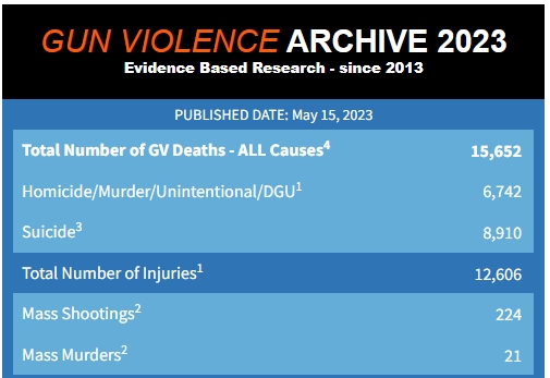 2023년 5월 14일 현재 총기 사망자 발생 현황 지도[gva 홈페이지]