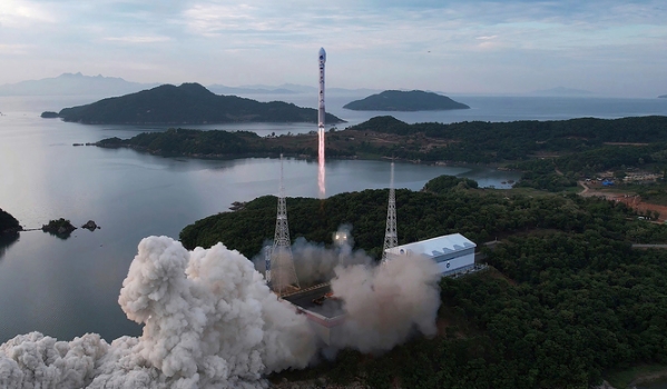 조선중앙통신·AP/뉴시스] 미 재무부가 중국에서 북한 탄도미사일 부품 조달에 관여한 북한 국적자 2명을 15일(현지시간) 제재했다. 북한 정부가 제공한 이 사진은 5월31일 서해위성발사장에서 만리경-1호 위성을 실은 새로 개발된 천리마-1호 로켓이 발사되는 모습을 보여준다.
