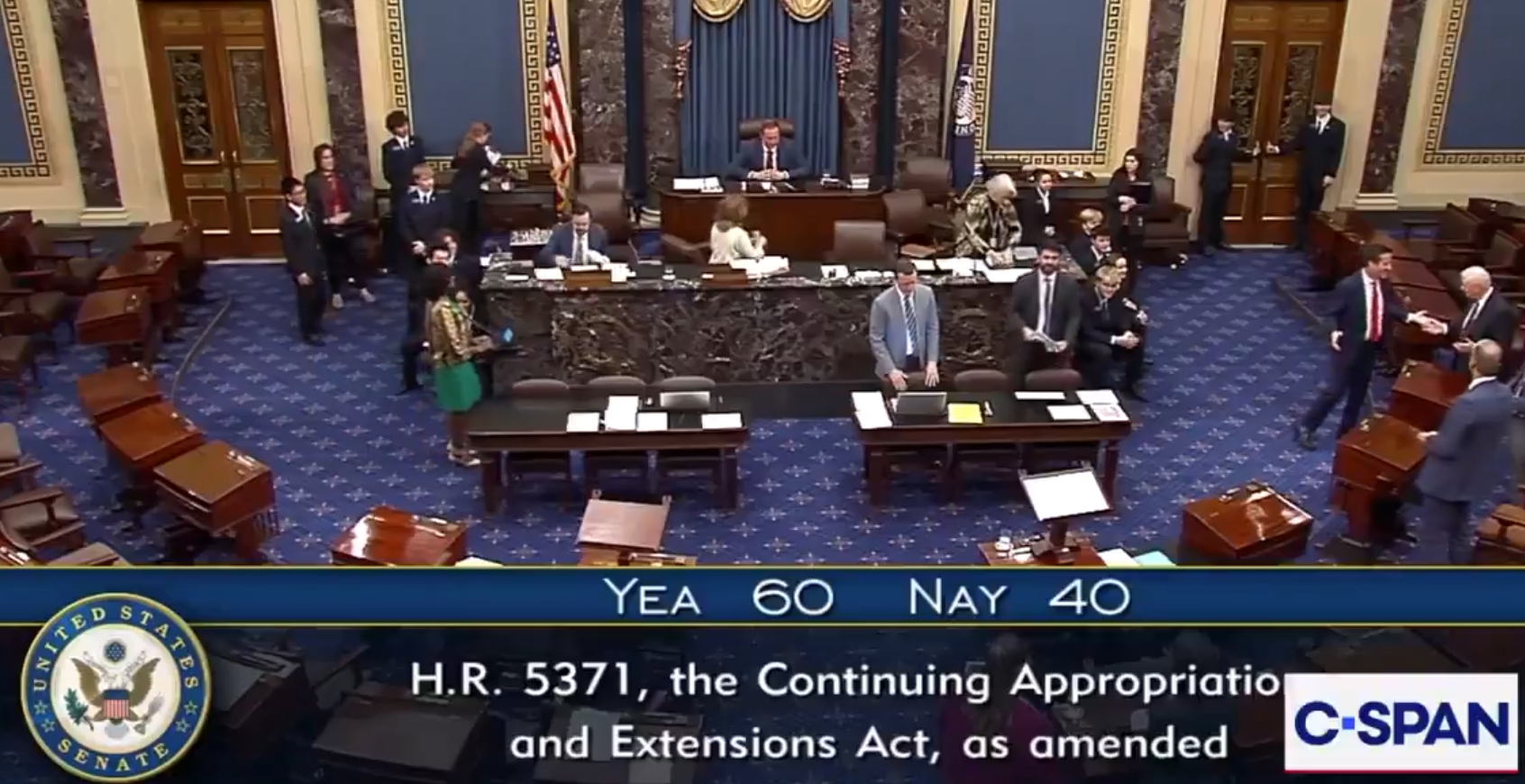 AP와 CNN 등에 따르면 미국 상원은 이날 찬성 60표 대 반대 40표로 정부 셧다운을 종식하기 위한 합의안을 통과시켰다. 민주당 중도 의원 8명이 합의안 표결에 협조했다.