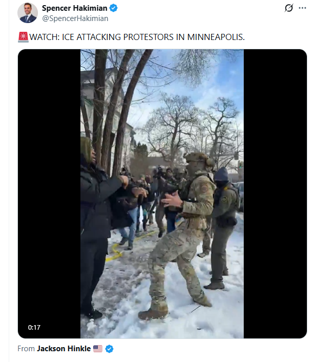 한편, 이번 시위의 직접적 계기가 된 ICE 요원의 총격으로 30대 여성이 사망한 사건은 이미 별도의 사법 절차와 조사 대상이 되고 있다. 메인스트림 언론들은 해당 사건과 별개로, 사망 사건 이후 전개된 시위 진압 과정 자체가 또 하나의 중대한 공권력 논쟁으로 부상하고 있다고 전하고 있다.
