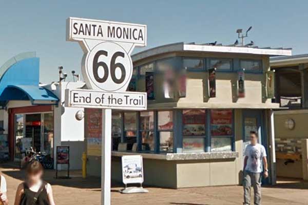 한편 루트 66의 서부 끝은 산타모니카이며 산타모니카 피어에 세워져있는 루트 66 표지판이 서쪽의 끝을 알리고 있다.