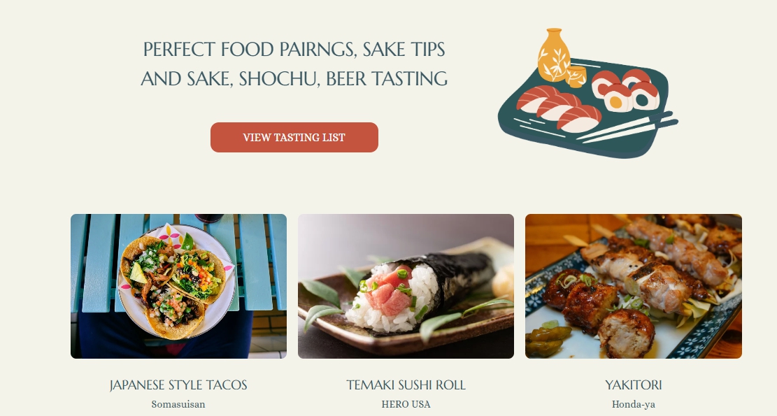 음식 부스에는 소마수이산(Somasuisan)의 ‘일식 스타일 타코(Japanese Style Tacos)’, 히어로 USA(Hero USA)의 ‘테마키 스시롤(Temaki Sushi Roll)’, 혼다야(Honda-ya)의 ‘야키토리(Yakitori)’ 등 일본식 퓨전 요리가 함께 선보인다.