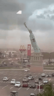 목격자들이 촬영한 영상에는 거대한 자유의 여신상 조형물이 강풍에 밀려 서서히 앞으로 기울어진 뒤 주차장 바닥으로 쓰러지는 장면이 담겼다. 이 장면은 소셜미디어(SNS)를 통해 빠르게 확산되며 현지에서 큰 화제를 모았다.