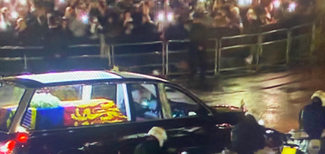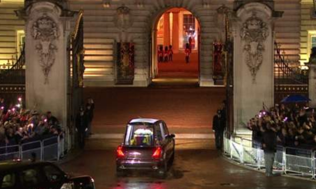 여왕의 유해는 공항 도착 이후 버킹엄궁으로 옮겨졌다. 하이드 파크 등 정해진 코스를 따라 약 20㎞를 이동했다. 이동 경로와 버킹엄궁 주변에는 어둠과 빗속을 뚫고 여왕에게 마지막 인사를 전하기 위해 모인 추모 인파로 가득했다.