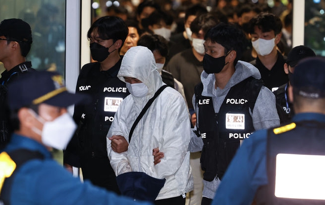 캄보디아 송환 64명, 전원 수갑 채워 압송…”마약검사 실시”